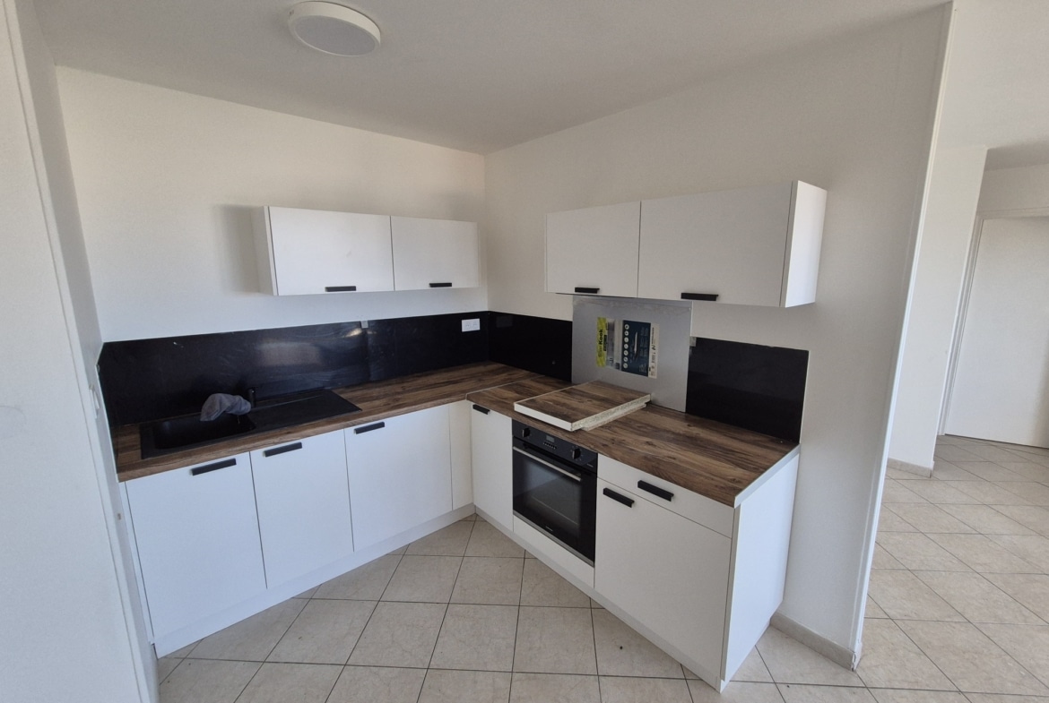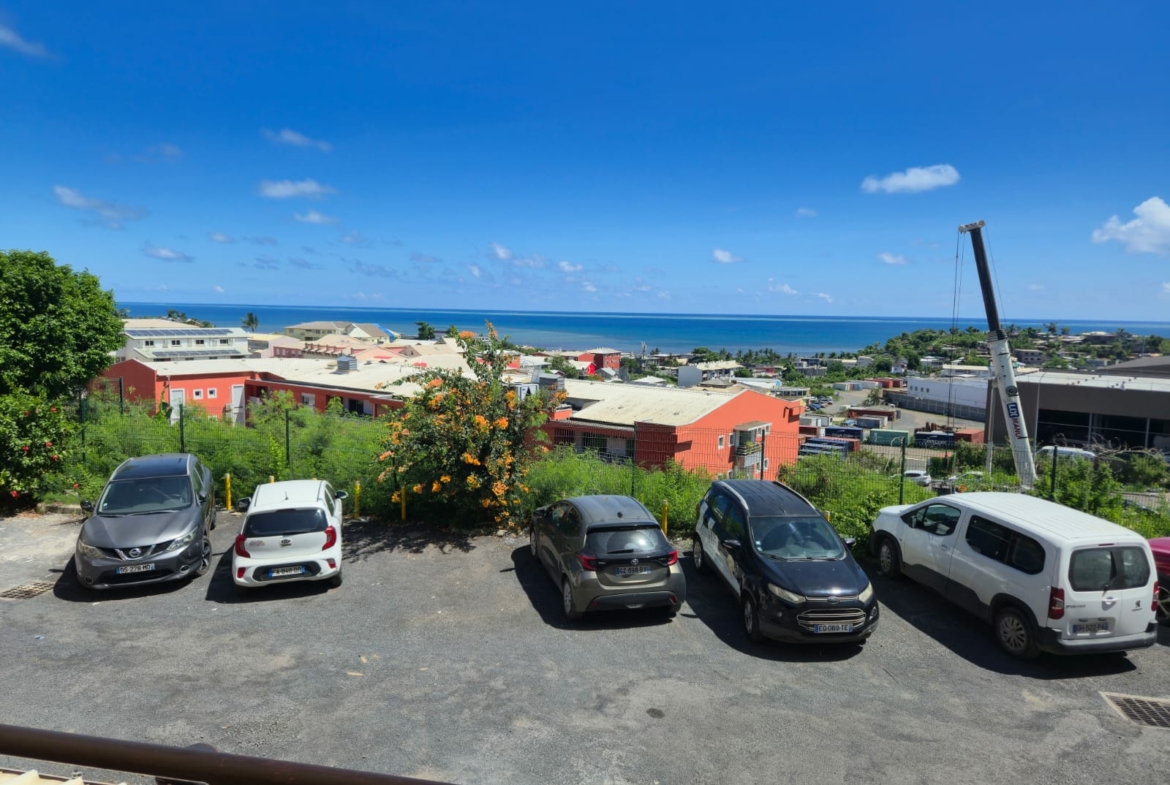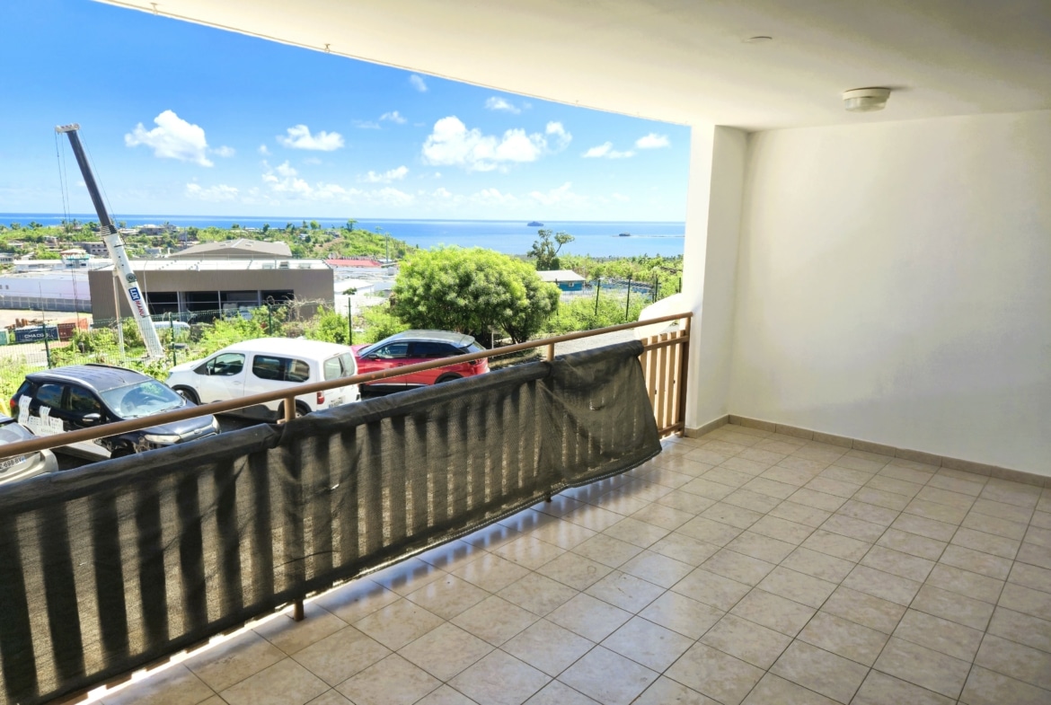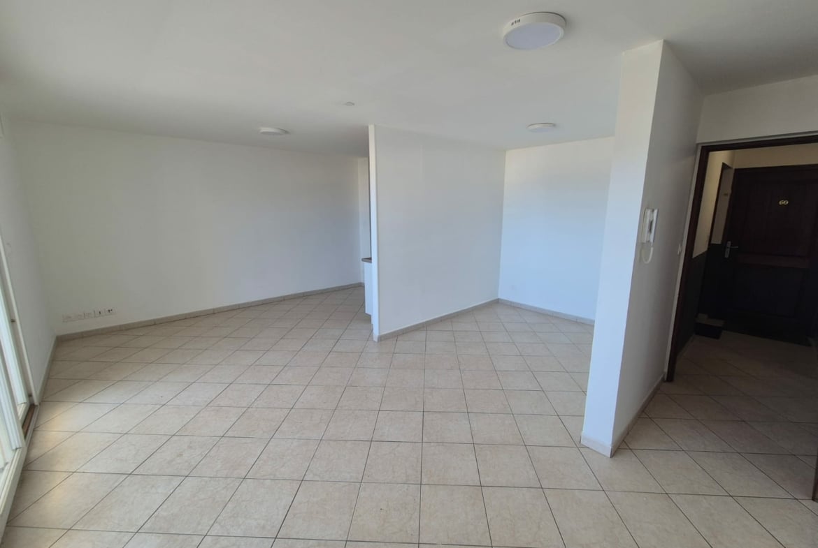 Beau T2 de 65m² ( 47m²+ 18m² de terrasse avec vue mer) situé à l’étage d’une résidence avec piscine et comprenant :