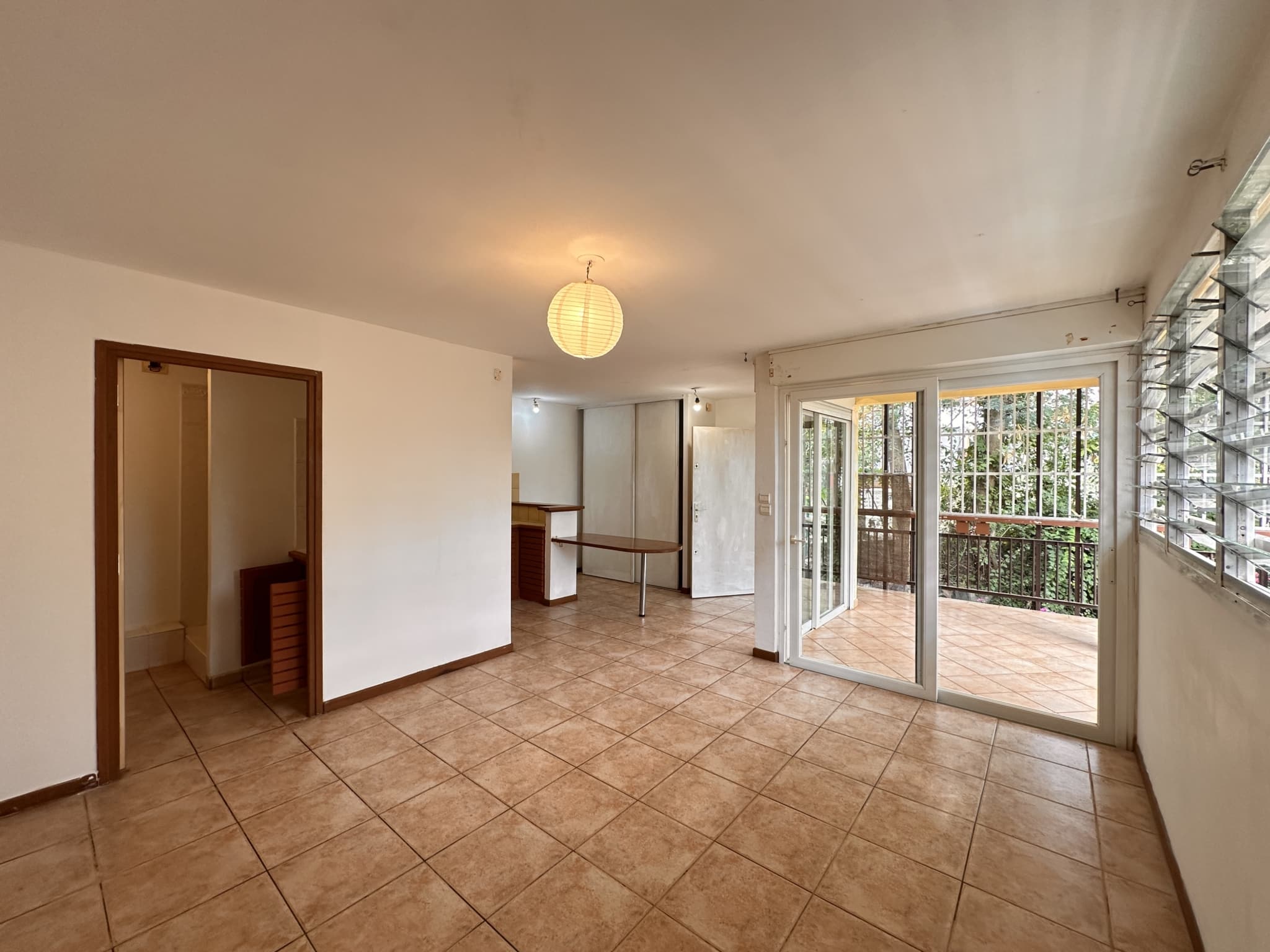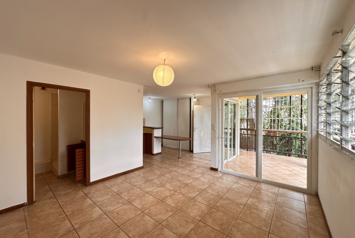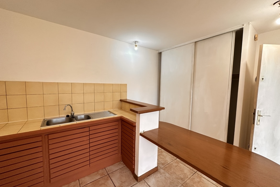 Un STUDIO situé dans la résidence LE CANNELIER, dans le village de TSOUNDZOU II, proche des commodités du village, avec une superficie habitable de 28.96 m² (superficie hors terrasse), comprenant :